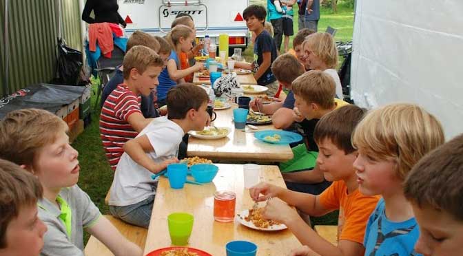 Het zou een snikheet weekend worden. Nou dat was het ook… en zowel voor als na het zwemmen is er uiteindelijk ook nog gefietst. Met ruim 32 graden op de thermometer en heul veul water drinken is het heel goed verlopen en hebben de 23 kids die mee waren zich goed aan de hittegolf aangepast. Ze wisten goed hun energie op de afstand te doseren en bij terugkomst op de camping stond de lunch al voor ze klaar.