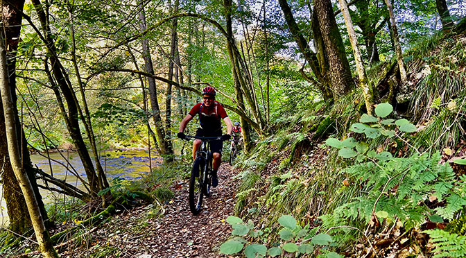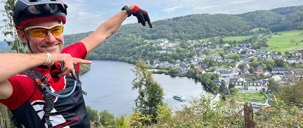 De Eifel is een vulkanisch gebied met rivierdalen en steile heuvels tot een hoogte van 600 meter. Singletracks langs stroompjes en bosrijke klimmen met afdalingen liggen al bij het hotel om de hoek. Monschau ligt om fietsbare afstand dus zal zeker terugkomen als koffie stop of lunch locatie in de routes. De eerste verkenning is al gedaan en stelde niet teleur.
